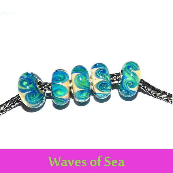 Waves of Sea is the glass that best represents summer and certainly cannot be missing in a sea-themed bracelet. The waves have shades ranging from aquamarine to blue and break on a golden sand. This is one of the uniques I voted for and it disappointed me a bit. In fact, compared to the original, the sand is almost white and is quite free of glitter.
